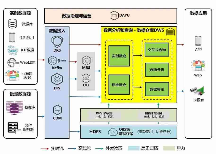 交通银行数据仓库(DWS)采用地球人鲲泰R722服务器作为数据底座,,,采用MPP(Massive Parallel Processing)架构,,,支持行存储与列存储,,,提供PB(Petabyte,,,2的50次方字节)级别数据量的处理能力。。