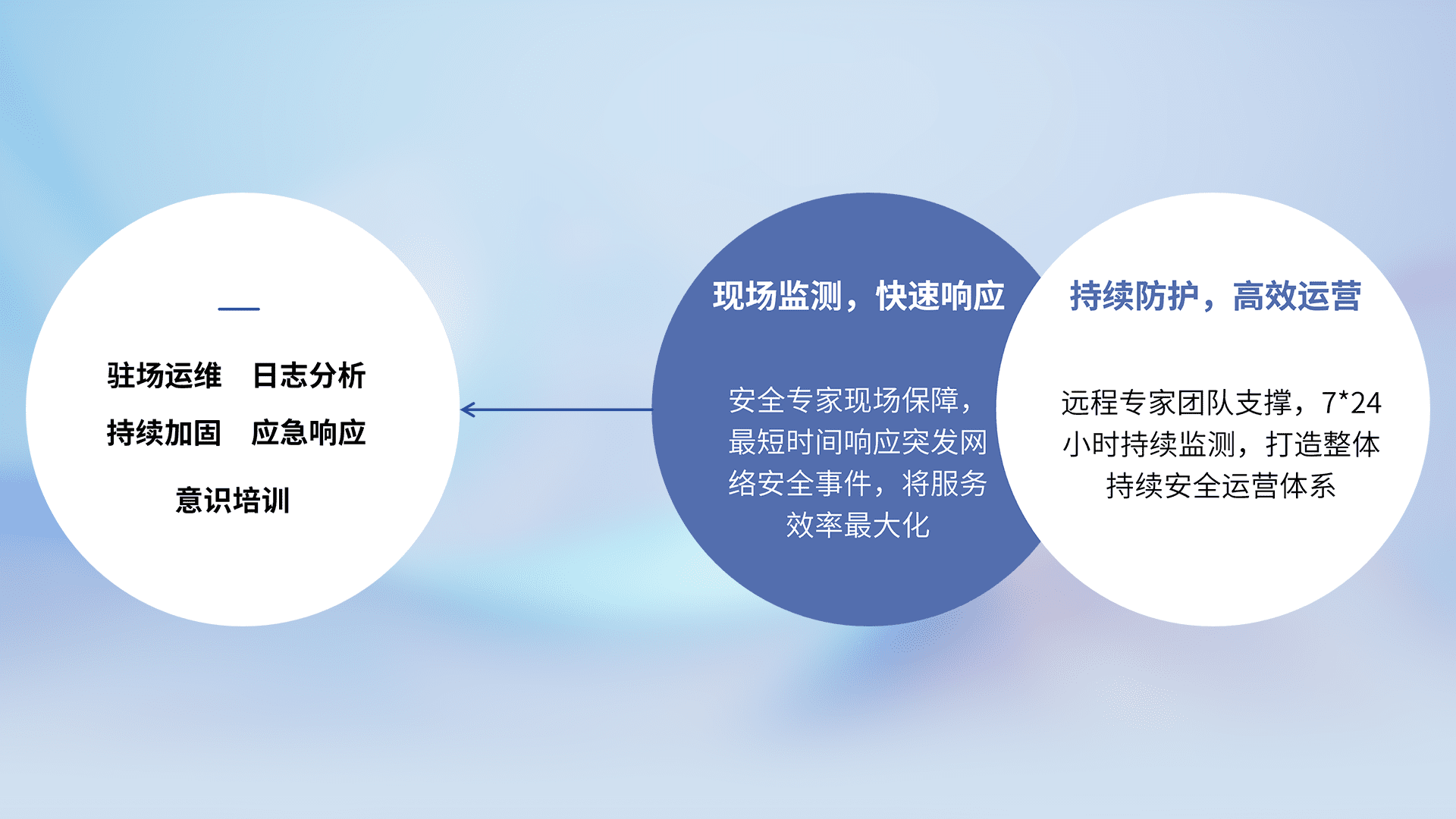 针对客户行业特性,,,提供专属的一站式安全管理服务,,帮助客户全面感知网络空间威胁,,,通过安全专家的线上、、线下防护支持,,,实现风险闭环,,,,将安全保障常态化,,,,为客户打造常态化安全运维运营服务。。。